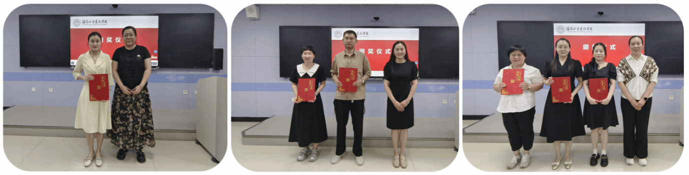 经过激烈角逐,于美臣荣获一等奖,金晓萌、陈新荣获二等奖,张园园、林昕、尤嘉荣获三等奖。与会领导为获奖教师颁发荣誉证书并合影留念。